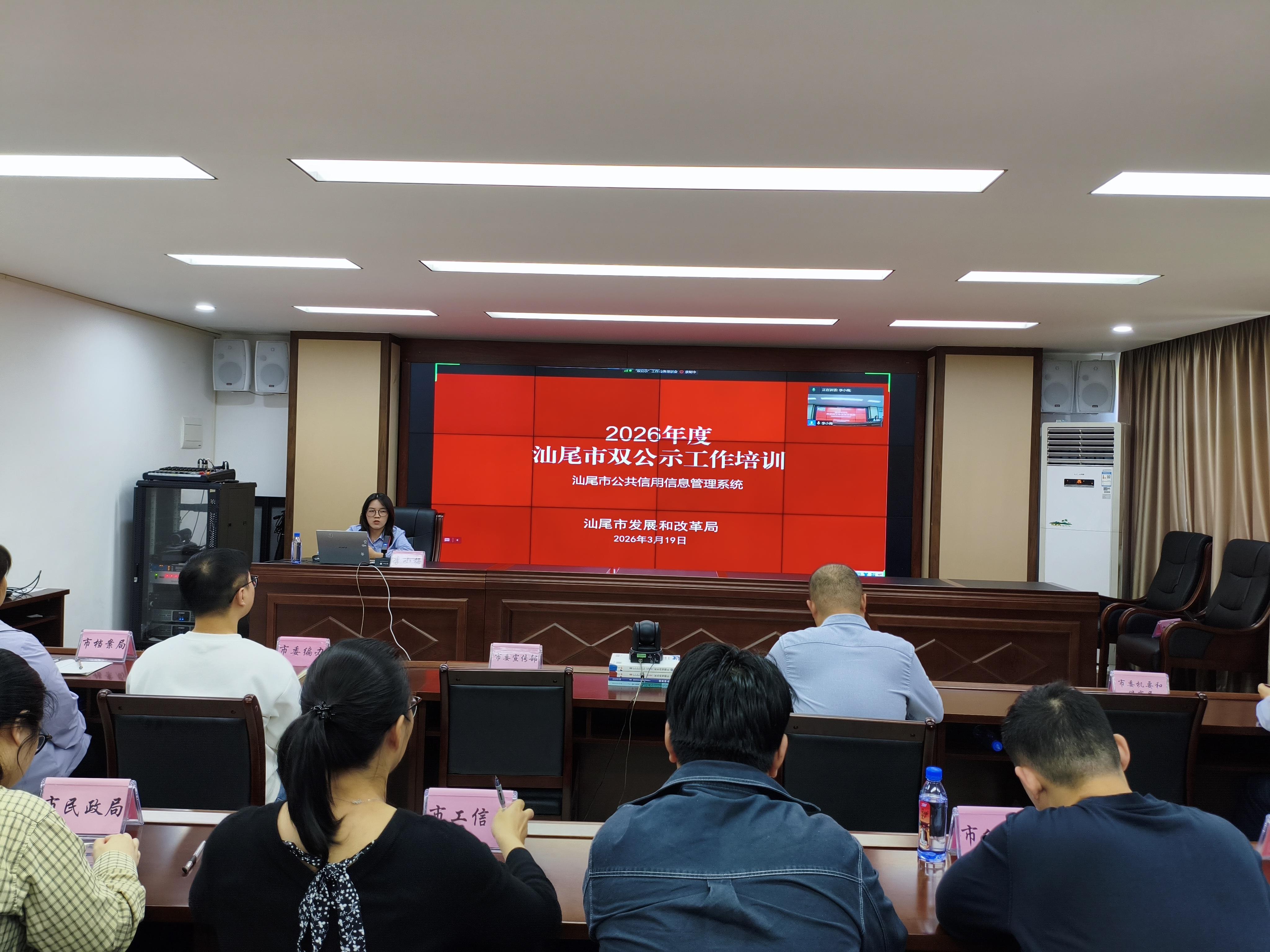 为深入贯彻落实国家、省关于信用信息公示管理的最新政策要求,全面提升我市行政许可和行政处罚“双公示”信息报送的完整性、及时性、合规性,3月19日,汕尾市发展和改革局组织召开2026年度全市“双公示”工作培训会。